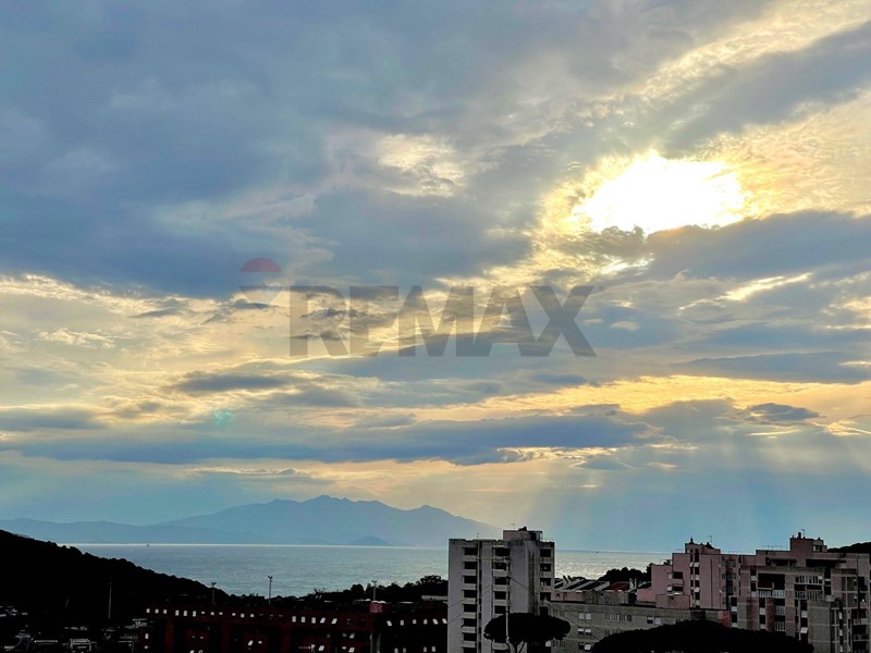 L'appartamento ci accoglie in una confortevole e luminosa zona giorno open space con vista mare panoramica da cui possiamo accedere al balcone pranzabile , troviamo poi l' ampio angolo dedito alla cottura . La zona notte è composta da una camera matrimoniale , una spaziosa camerina , ampio bagno con vasca , piccolo ripostiglio , altro bagno di servizio . Pavimento in parquet , termo autonomo , porta blindata . Ottime rifiniture . A completamento della proprietà grande e comoda cantina con scarichi/attacchi per acqua che dà accesso ad ulteriore vano pluriuso che fa da collegamento a sua volta con la tettoia esterna ed il giardino ; posto auto coperto riservato , GIARDINO al piano terreno di 100 mq di proprietà esclusiva recintato con barbeque e spazio vivibile per godersi piacevoli serate estive insieme ad amici e parenti insieme ai nostri amici animali . Ti aspettiamo per una visita .