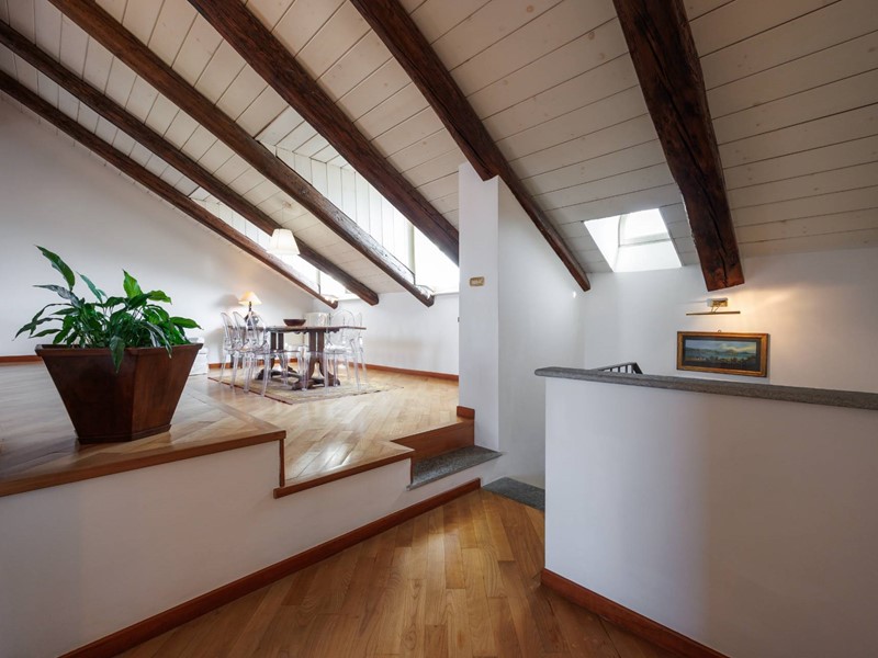 Il livello superiore, mansardato con altezze generose, ospita un magnifico salone di circa 55 mq, impreziosito da una doppia vista straordinaria: da un lato Palazzo Carignano, dallaltro la Mole Antonelliana. Completano il piano una cucina abitabile, una camera da letto e un bagno, per ulteriori 120 mq circa.
