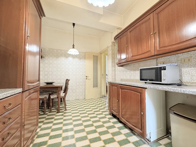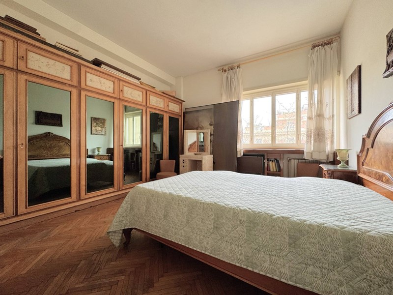 Elegante Appartamento in vendita - zona Esquilino. Nel cuore del rione Esquilino, a 300 metri dalla fermata metro Manzoni, e più precisamente in Via Santa Croce in Gerusalemme proponiamo in vendita un appartamento termoautonomo, posto al 3° piano di un palazzo di tipo medio signorile, edificato alla fine degli anni 50,rifinito in intonaco e provvisto di ascensore. L'immobile vanta una superficie di 153 mq catastali e si compone di un ampio ingresso, che introduce direttamente nella zona giorno in cui troviamo, un salone doppio di 40 mq caratterizzato da una parete totalmente finestrata e una grande camera adibita a studio. Dall' ingresso si accede anche ad un corridoio di disimpegno che permette di raggiungere due camere matrimoniali, una grande cucina abitabile, un bagno padronale di dimensioni generose dotato di una vasca e una camera di servizio con wc ad uso esclusivo. Completano la proprietà 3 balconi di cui due con piacevole affaccio esterno sulla via, aventi accesso dallo studio e dal salone/camera, il terzo a servizio della cucina con affaccio nella corte interna. L'appartamento risulta molto luminoso, si presenta in discreto stato complessivo, ed è dotato di porta d'ingresso blindata, infissi a taglio termico con doppio vetro, serrande elettriche nel salone, inferriate di sicurezza a protezione delle finestre che affacciano sulla corte interna, impianto di riscaldamento e produzione dell' acqua calda autonomo con caldaia recentemente sostituita, pavimentazione rivestita in pregevole marmo nella zona di rappresentanza e svariate opere di falegnameria realizzate su misura. La proprietà gode di una doppia esposizione: il salone e tutte le camere più grandi affacciano verso est con una piacevole veduta aperta sui villini di Via Santa Croce in Gerusalemme, la cucina e i servizi espongono verso ovest in una corte interna. Sono stati deliberati lavori di ristrutturazione riguardanti tutte le facciate del fabbricato, il cui costo verrà totalmente saldato dal venditore.