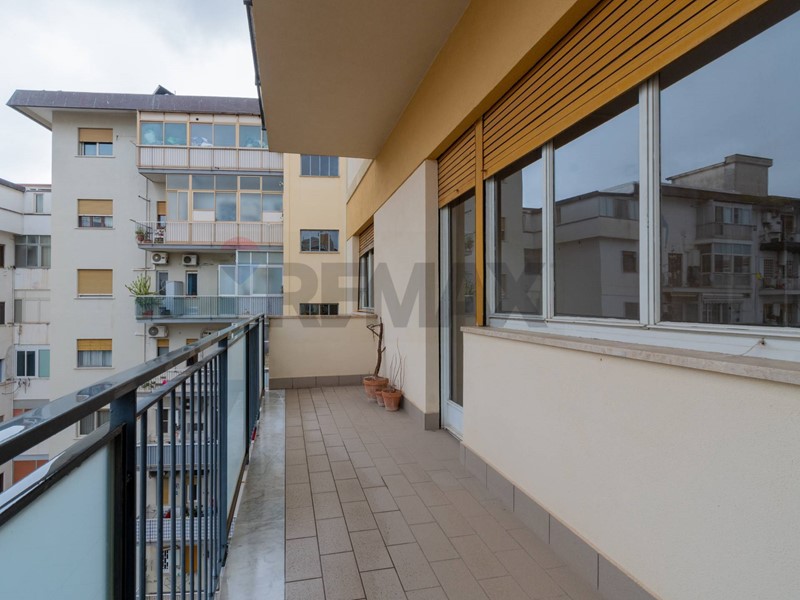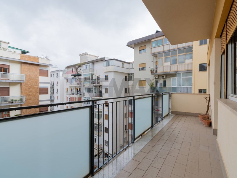 ingresso su disimpegno, salone doppio con ampio balcone, due camere matrimoniali finestrate, cameretta con terrazza di collegamento, cucina con balcone e due servizi finestrati.