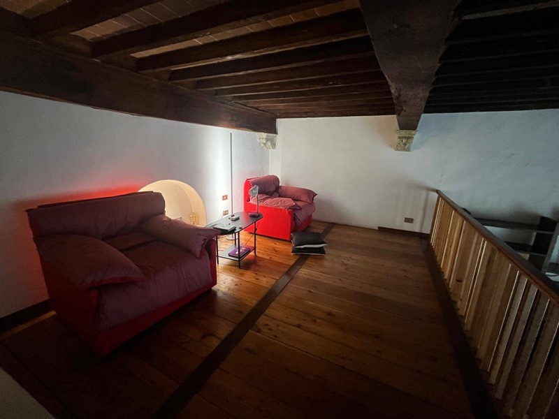 L'immobile, situato al primo piano di un piccolo condominio di quattro, tipico della citta' medievale, composto da: una luminosa e spaziosa camera da letto matrimoniale, con due grandi finestre, soffitti in legno molto alti, un ampio bagno con vasca, una cucina abitabile con il passavivande sulla zona pranzo-soggiorno-salotto molto accogliente e conviviale, un soppalco in legno, da utilizzare come seconda camera, lavanderia esterna e cantina al piano terra.