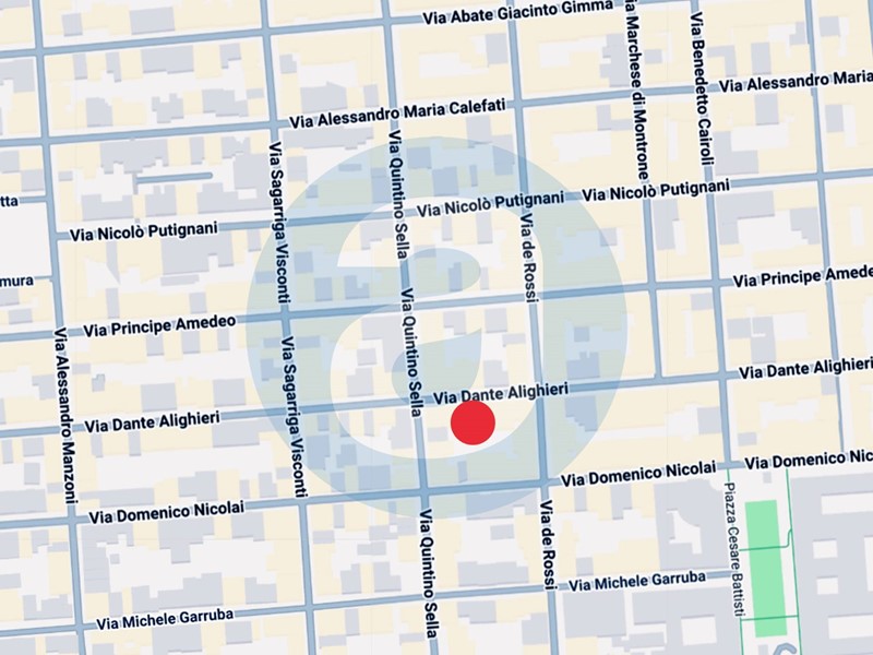 ESTERNO: Appartamento al quarto e ultimo piano in uno stabile dotato di ascensore. Terrazzino di 10 mq con affaccio interno. Balcone di 3 mq con affaccio su via Dante.