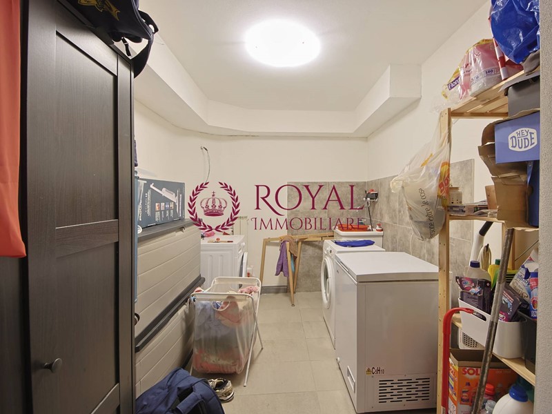 Al piano terra troviamo: una camera matrimoniale, bagno spazioso senza finestra, e un comodo ripostiglio, attualmente utilizzato come cabina armadio e lavanderia.