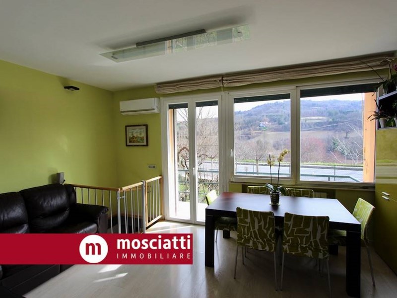 L'abitazione si trova all'interno di una piccola palazzina di sole 4 unità abitative, a due passi dalla piazza e dal Centro, è posta al piano RIALZATO molto comodo, ed è composta da: ingresso, cucina abitabile con balcone e ripostiglio, sala con altro balcone e accesso con una scala a chiocciola ad un'ulteriore stanza adibita a studio, disimpegno zona notte con camera matrimoniale, cameretta e bagno.