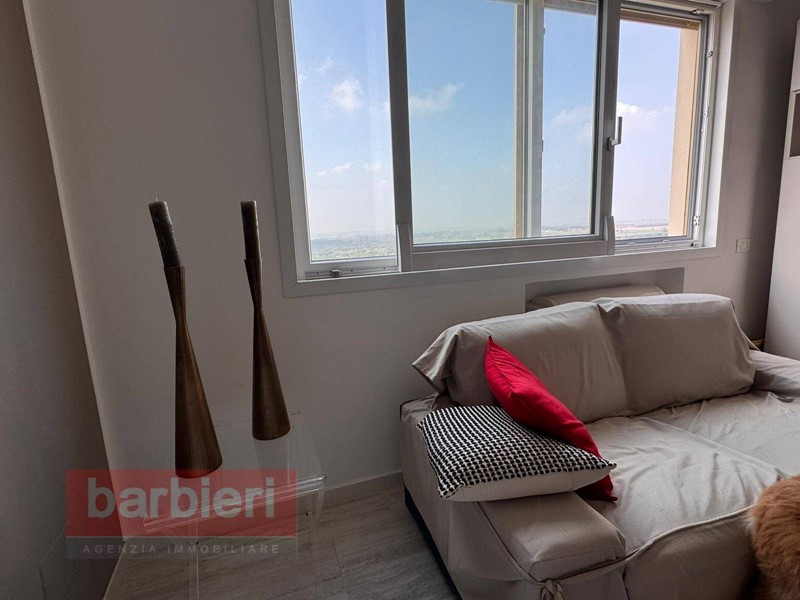 Affittiamo a Milano Marittima appartamento situato al sedicesimo del grattacielo Royal. Appartamento completamente ristrutturato cosi composto da ampio soggiorno arredato con stile moderno dotato di ampie finestre che offrono una vista mozzafiato, angolo cottura ,due accoglienti camere da letto: una matrimoniale e una con due letti singoli e bagno con box doccia.