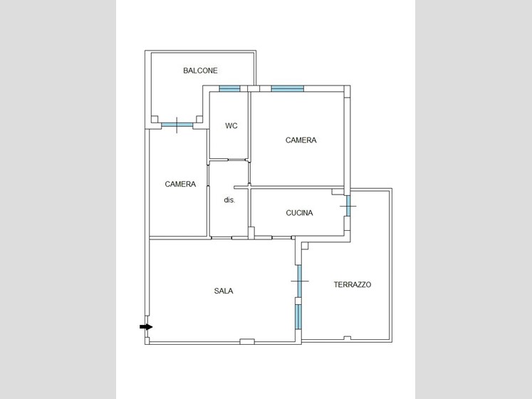 L'appartamento è composto da 4 locali e 1 bagno, con una disposizione interna ottimale per la massima comodità. Entrando, si viene accolti da un'ampia sala luminosa che conduce alla cucina, entrambe con accesso al terrazzo dove è possibile godere di momenti di relax all'aria aperta. Il disimpegno porta alla camera matrimoniale e alla cameretta con balcone, entrambe spaziose e ben illuminate. Il bagno finestrato è dotato di doccia.