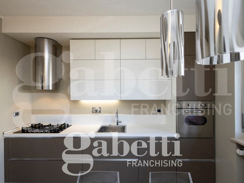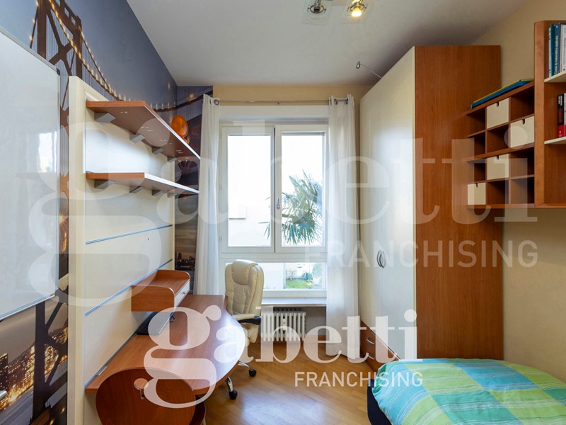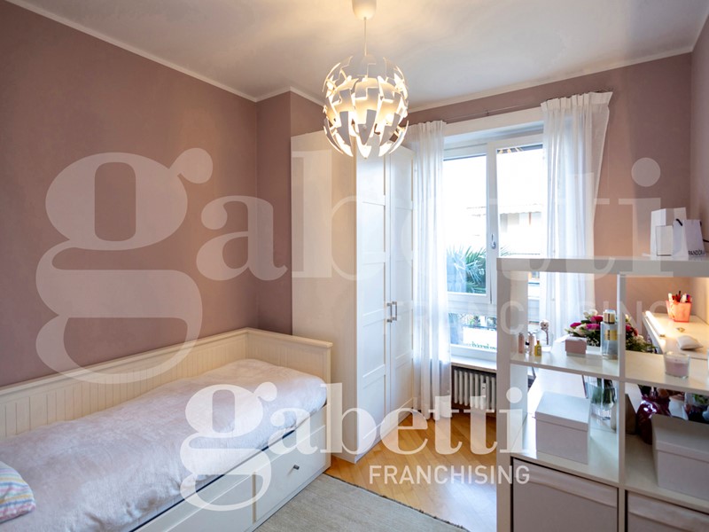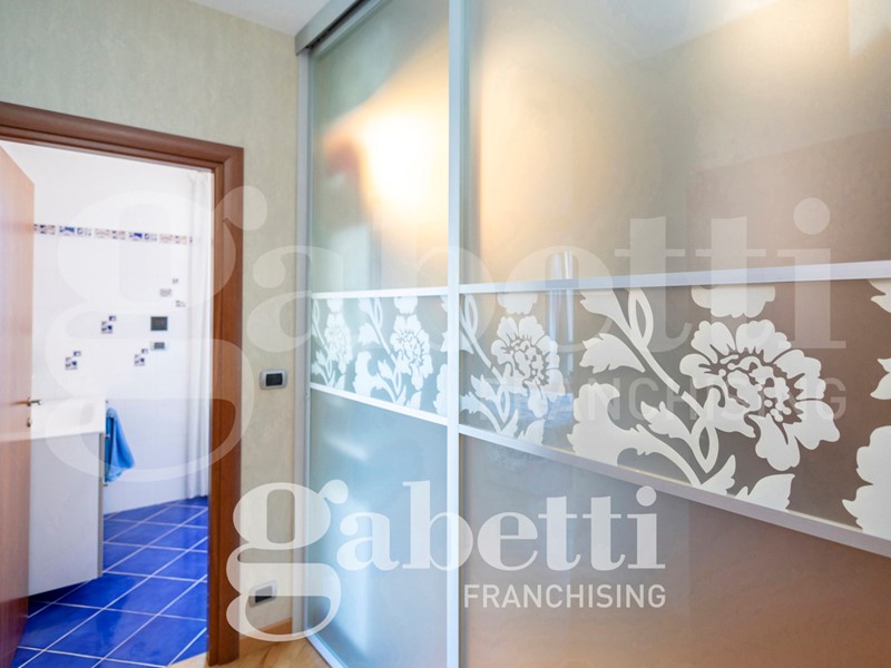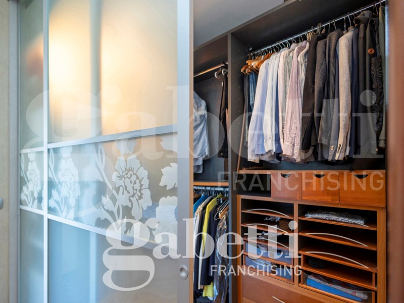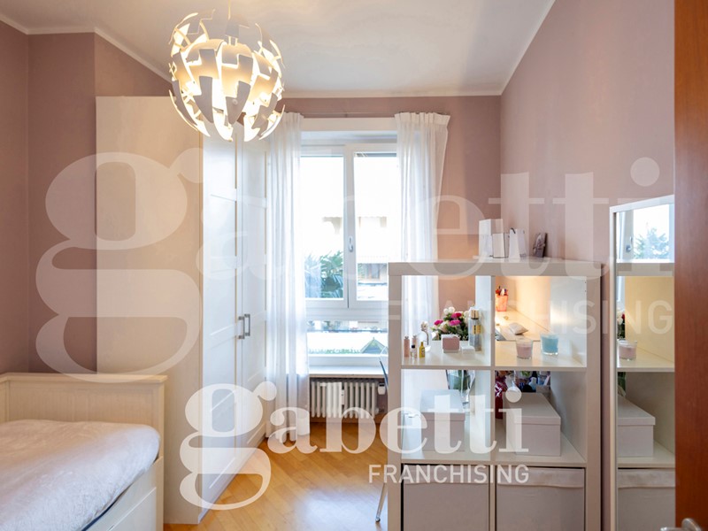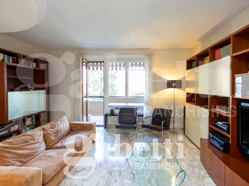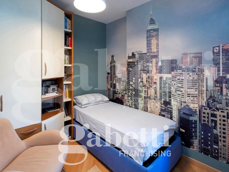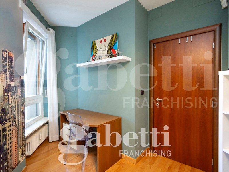 L'alloggio è internamente così composto: ingresso sull'ampio salone, cucina abitabile, quattro camere (di cui una adibita a studio), due bagni (di cui uno cieco), ripostiglio, oltre al terzo bagno adibito a lavanderia e bagno per ospiti. Due balconi profondi.
