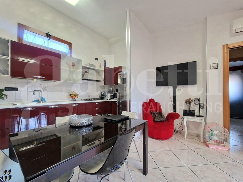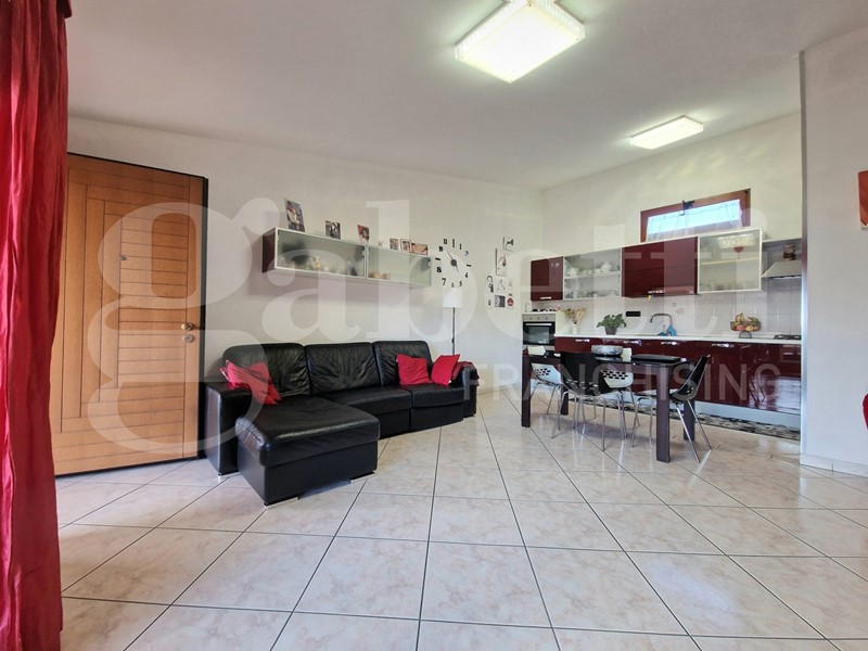 L'ingresso principale conduce a un ampio soggiorno luminoso, caratterizzato da una cucina a vista ben integrata nello spazio. Dal soggiorno si accede alla veranda esterna vivibile, perfetta per momenti di relax all'aria aperta.