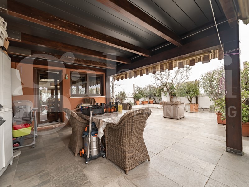 Su uno dei terrazzi è installata una tettoia bioclimatica di circa 5x5 metri, ideale per vivere l'esterno in ogni stagione.