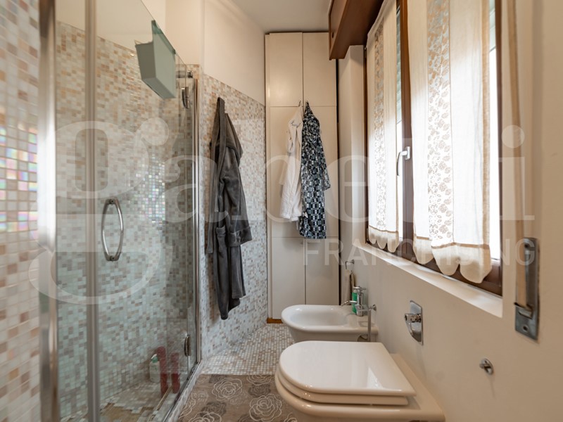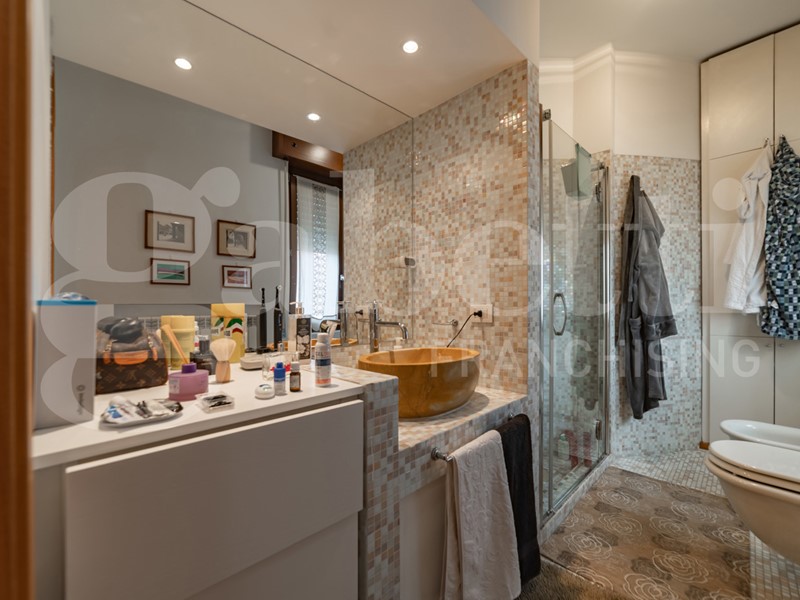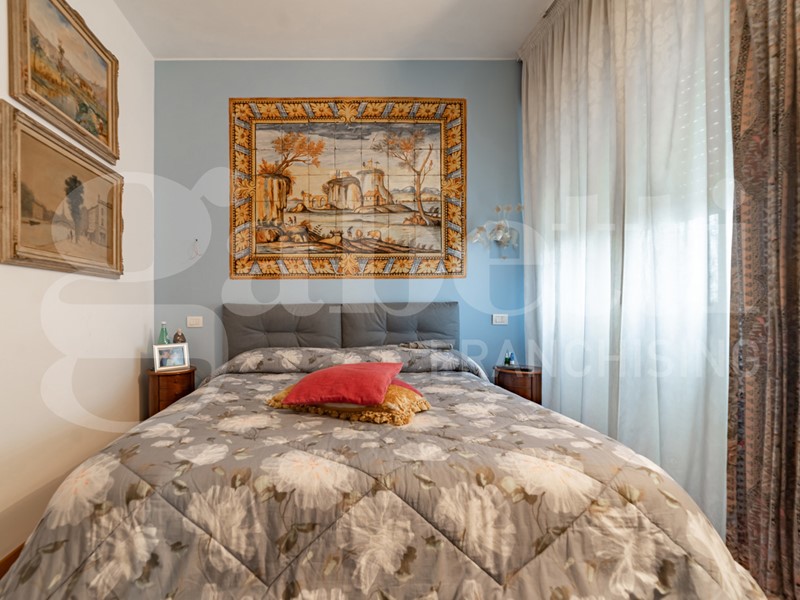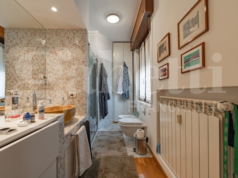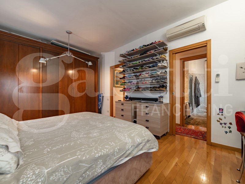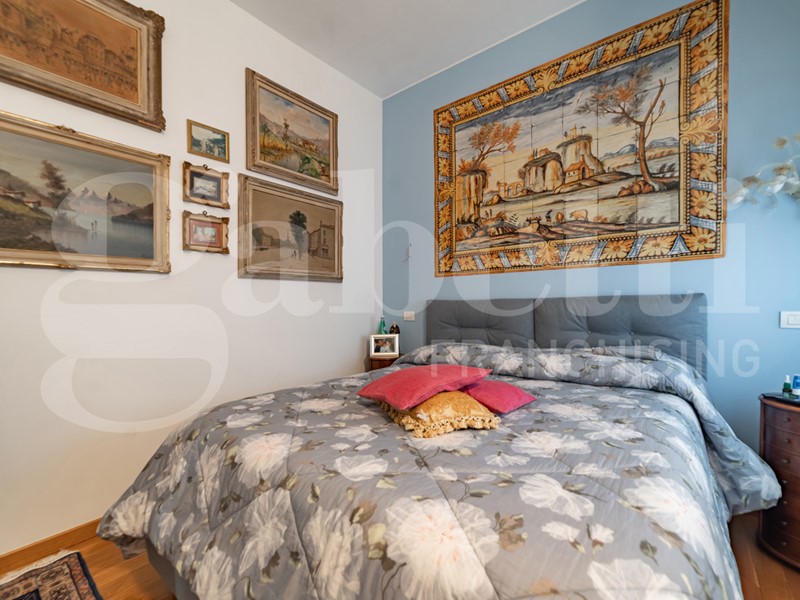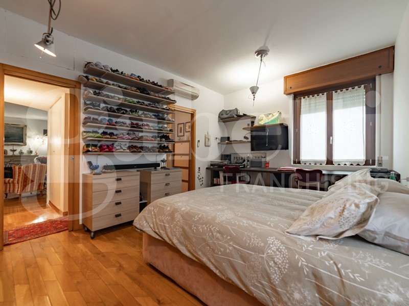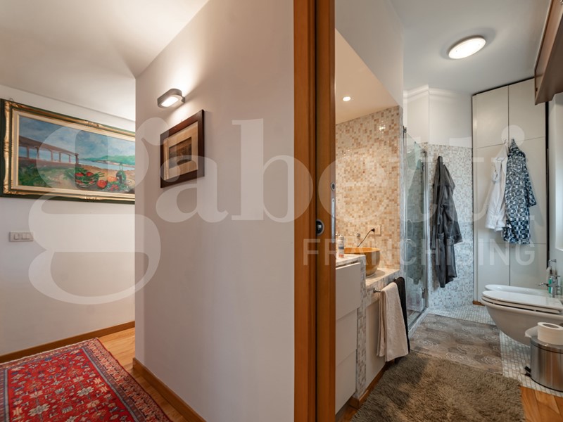 Il piano principale ospita una spaziosa camera matrimoniale con cabina armadio, una cameretta, due bagni e un ampio balcone.
