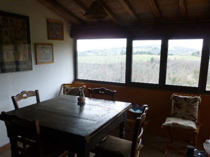 - al piano primo, collegato da scala interna in legno al piano terreno ma avente anche accesso indipendente da scala esterna in muratura, da cinque vani oltre cucinotto, bagno e loggiato chiuso a veranda.