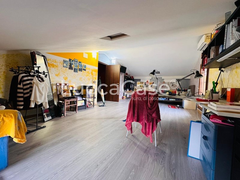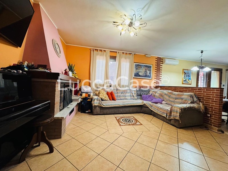 N012B - Porcari - Proponiamo in vendita ampio appartamento sito al 1p di villetta singola. La casa si compone da ingresso, soggiorno con cucina a vista in finta muratura con accesso al terrazzo abitabile e camino, due ampie camere matrimoniali, bagno con doccia finestrato, bagno con vasca Jacuzzi finestrato e ripostiglio uso lavanderia. Al piano superiore ampia mansarda abitabile con camera matrimoniale, bagno attualmente in fase di essere finito e due ampi locali ad uso studio e seconda camera. A corredo 2 posti macchina privati. La casa ha riscaldamento a pavimento, doppi vetri e zanzariere oltre a pannelli solari. Costruito nel 2002, gode di una superficie di 120 metri quadrati, in uno stato buono che promette una vita abitativa comoda e piacevole. Un'opportunità di investimento o di residenza in una zona tranquilla e ben collegata. [Classe energetica: D]