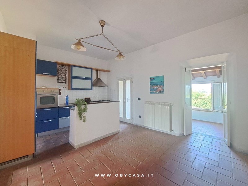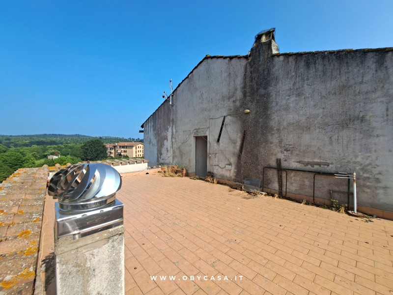 Lappartamento, ristrutturato nel 2004 conservando il carattere originario dellimmobile, si compone di soggiorno con camino, cucina abitabile, camera matrimoniale e bagno oltre ad un balconcino, vano tecnico esterno ed una terrazza di mq 42 con accesso dal terzo piano e con una vista mozzafiato sul paese e sul verde.