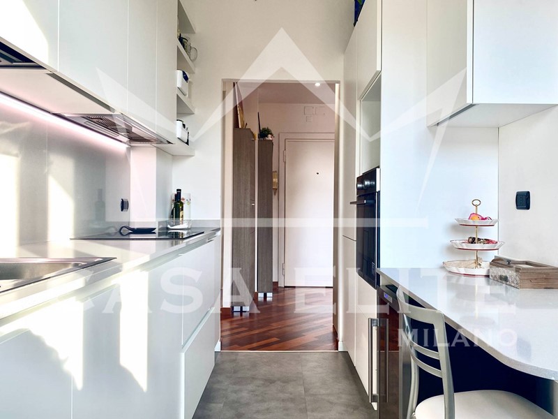 L'appartamento è posto all'ottavo ed ultimo piano con esposizione totalmente interna, che garantisce un'ottima luminosità e tranquillità. Internamente la soluzione si compone di: ingresso su disimpegno, ampia e luminosa zona giorno con balcone, cucina abitabile comprensiva di lavastoviglie e piano a induzione, bagno finestrato con box doccia ed una graziosa camera da letto matrimoniale. Completano la soluzione un solaio di pertinenza e l'arredo realizzato su misura compreso nel prezzo.