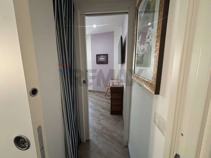 Gli spazi sono razionali e luminosi: ingresso sul soggiorno, cucinotto separato e arredato con gusto, due camere da letto, due comodi ripostigli e due bagni entrambi con doccia. Le condizioni interne sono ottime, con pavimentazione in gres porcellanato ed infissi a doppi vetri, inoltre l'appartamento dispone di un impianto di riscaldamento autonomo classico oltre che un impianto di climatizzazione.