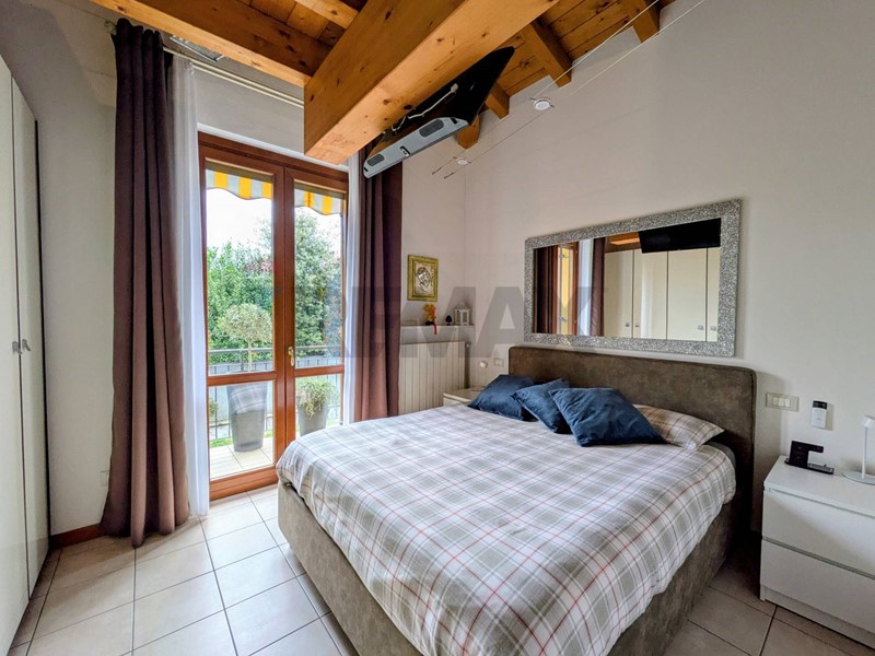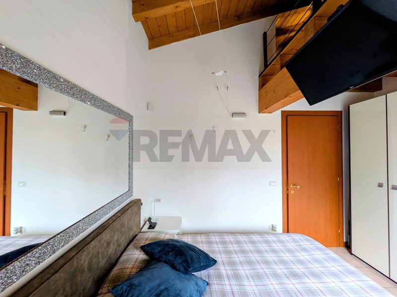 Elemento architettonico distintivo e di grande valore aggiunto è il soppalco, raggiungibile dal soggiorno tramite una scala di design in legno e metallo; questo spazio supplementare conferisce un carattere unico alla soluzione, offrendo un ambiente jolly ideale per diverse necessità di utilizzo o stoccaggio. La zona notte, separata da un disimpegno funzionalmente organizzato con armadiature a muro che celano l'angolo lavanderia, ospita un bagno finestrato con box doccia e una camera matrimoniale di ampie dimensioni. Anche la camera vanta uno sfogo esterno su un secondo balcone, anchesso dotato di tenda da sole e con affaccio aperto sui parchi e sulle aree verdi limitrofe.