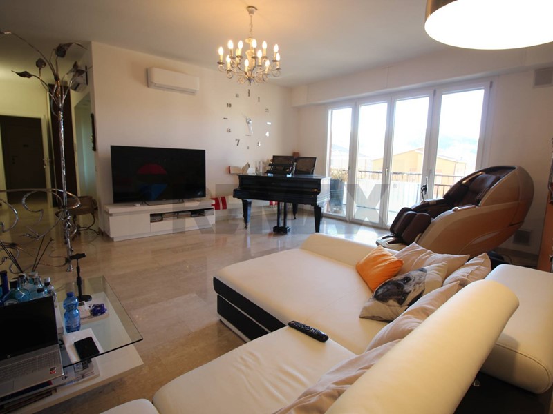 -Ingresso, meraviglioso e luminoso soggiorno con cucina Open Space, locale adibito a sala da pranzo ( trasformabile in terza camera da letto), un terrazzo vivibile con esposizione Sud/Ovest ed un balcone; accedendo alla zona notte, troviamo una camera da letto dalle ampie metrature, bagno con doccia e secondo terrazzo con esposizione Nord/Est.
