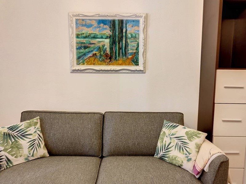 L'appartamento è per due persone: l'ingresso nella zona giorno con cucina attrezzata con tutto il necessario per cucinare quello che desideri ...troverai stoviglie, piatti, pentole, un comodo forno, un micoonde frigo con spazioso freezer, macchina per il caffè , lavastoviglie e lavatrice, un'ampia zona conversazione dotata di divano e tv, una camera con letto matrimoniale. Il bagno ampio dotato di scaldasalviette, doccia e finestra. L'appartamento è dotato di impianto di aria condizionata ed acqua calda autonoma, situato a circa 200 metri da Piazza Cavour e a pochi metri dal mare, servito da tutti i negozi, supermercati , stazione raggiungibile a piedi . Possibilità di parcheggio in zona .