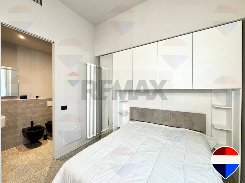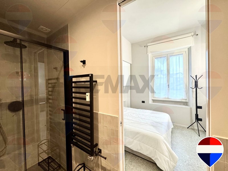 La camera matrimoniale è ampia, luminosa e dotata di armadiature su misura che ottimizzano lo spazio senza comprometterne la vivibilità. Il bagno en suite, anchesso frutto della recente ristrutturazione, presenta materiali moderni, sanitari sospesi e una comoda doccia in vetro, con un insieme estetico coerente con il resto della casa.