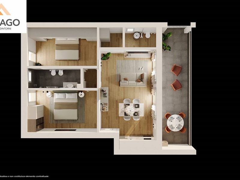 La zona notte è composta da due confortevoli camere da letto e due bagni moderni e ben rifiniti. L'appartamento verrà consegnato in ottime condizioni, con finiture di alta qualità e materiali moderni.