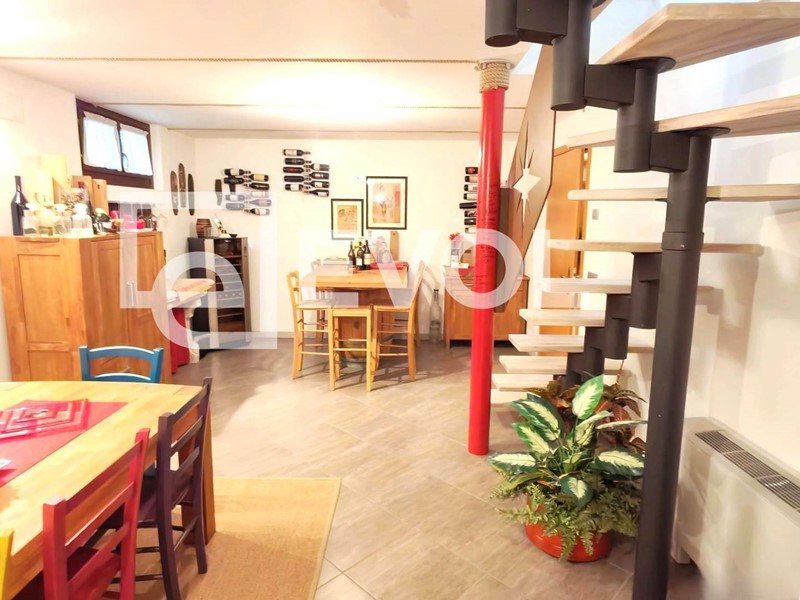 Al piano terra si sviluppa la zona giorno con soggiorno e cucina. Sempre su questo livello troviamo una camera matrimoniale, una seconda stanza oggi utilizzata come salottino/studio (ma a tutti gli effetti una camera) e due bagni moderni con doccia.