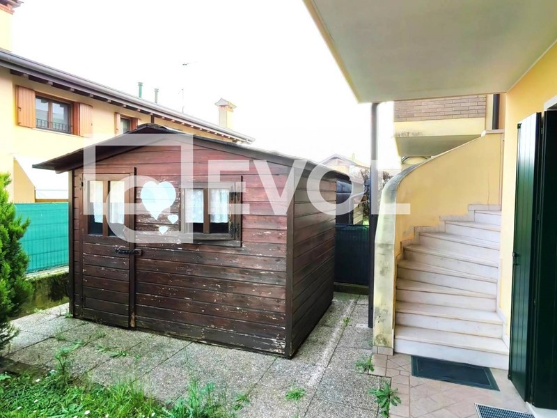 Allesterno la casa è circondata da due giardini, uno frontale e uno sul retro, ideali per chi ama stare allaperto. Nel giardino è presente anche una pratica casetta in legno per attrezzi o biciclette.