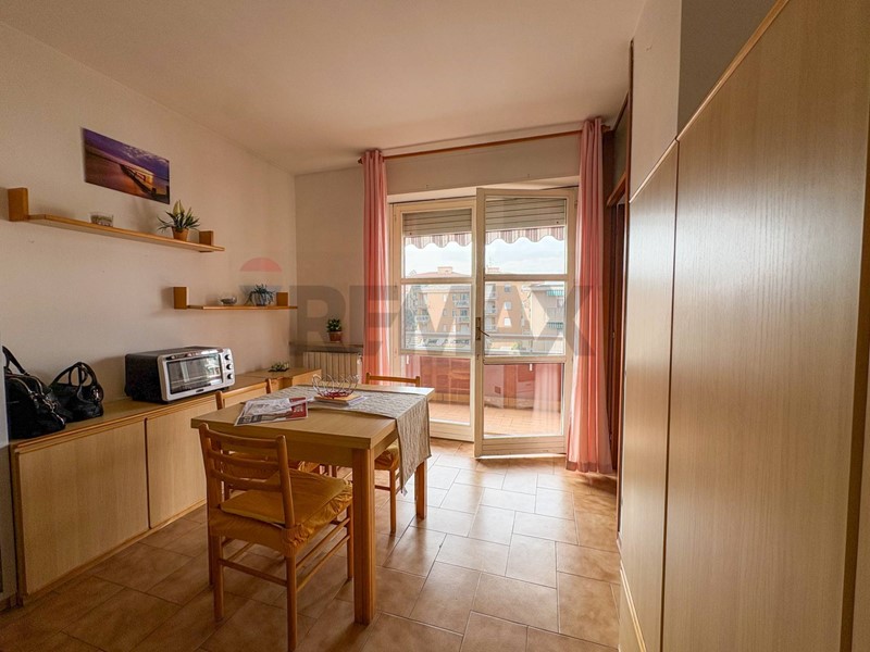 Una grande portafinestra che da su un ampio balcone dona luminosità e quello sfogo all'aperto da poter sfruttare con un tavolino e dove godersi il tramonto.