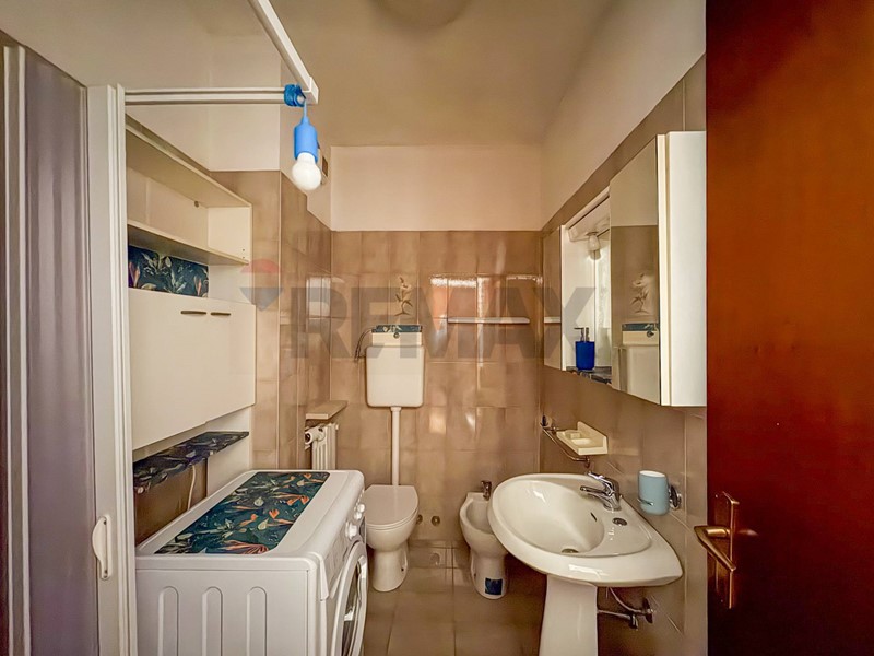 Il bagno cieco ma di dimensioni generose ospita anche lo spazio per poter mettere in colonna lavatrice e asciugatrice.