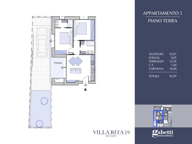 Questo elegante appartamento si trova al piano terra di Villa Rita 19 e si sviluppa su una superficie di circa 83mq, offrendo una distribuzione interna funzionale e luminosa.