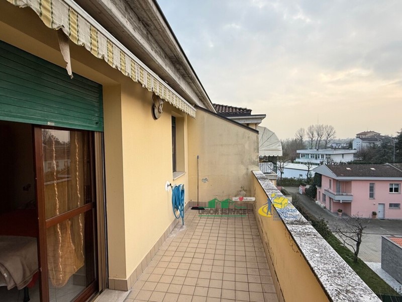 In elegante palazzina del 2002 servita da ascensore, proponiamo in vendita luminoso appartamento trilocale con sottotetto mansardato, garage e cantina, per una superficie complessiva di 104 mq, situato al terzo piano.