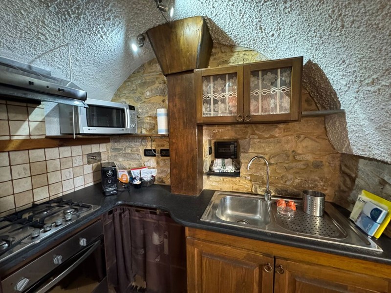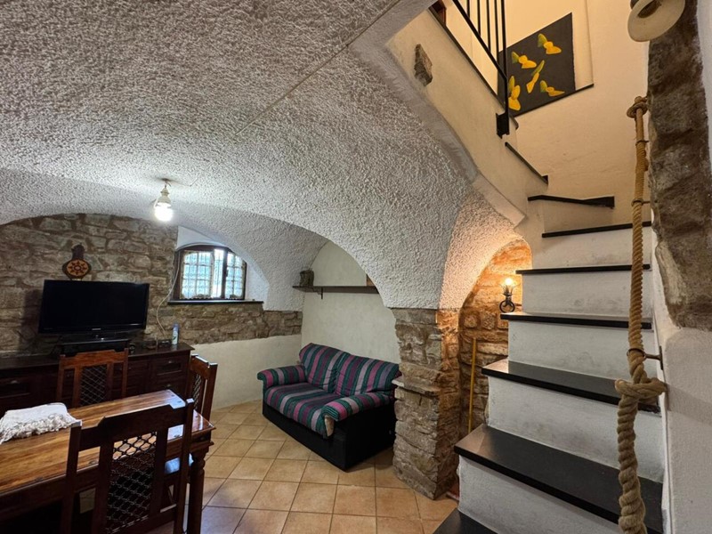 Imperia Frazione Poggi , nel Centro Storico di Poggi , vendiamo questo bilocale disposto su due livelli, al piano terreno troviamo un ampio soggiorno con angolo cottura e camino perfettamente funzionante, scala in ardesia interna che porta al piano superiore ed ultimo dove abbiamo un bagno con finestra e vasca/doccia, una camera matrimoniale con portafinestra che affaccia sulla campagna . Riscaldamento autonomo con camino e pompa di calore al piano superiore. Completamente arredato e in gran parte finemente ristrutturato a parte il bagno che, funziona ed è in buone condizioni generali ma che volendo puo' essere migliorato. L'appartamento è bellissimo ed è il classico appartamento Ligure con muri in pietra a vista, le volte a soffitto in mattoncini caratteristiche della zona e del tempo. L'alloggio pronto per essere abitato ! Vi attendiamo per visite ed ulteriori informazioni. Agenzia Cugge Immobiliare di Sanremo telefonare al 3355348165-3393690240