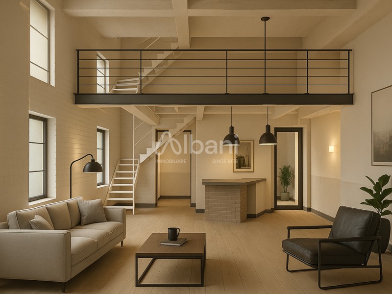 un grande loft di rappresentanza, moderno, scenografico, open space;