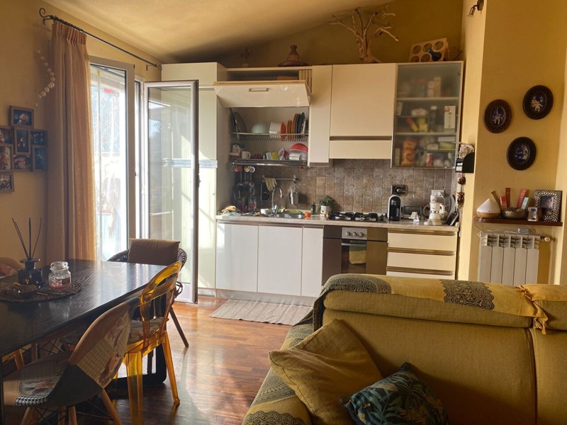 Imperia, Isolalunga, in villette a schiera recente costruzione, in vendita appartamento con ingresso indipendente al primo ed ultimo piano con terrazzo e garage, composto da: ingresso nella zona living con angolo cottura che affaccia sulla terrazza vivibile soleggiatissima con gazebo, camera matrimoniale, bagno, balcone. Le rifiniture sono state personalizzate con parquet nella zona giorno e nella camera, travertino nel bagno, 3 tipi di riscaldamento: caminetto a pellets, pompe di calore e riscaldamento con caldaia a gpl, zanzariere a tutte le finestre. Ampio garage, comodo alla fermata dell'autobus, APE: B
