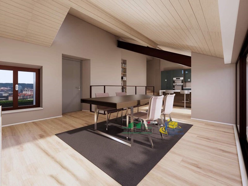 Distribuito su due livelli abitativi, questo appartamento si trova al secondo e terzo piano di un palazzo dotato di ascensore. Al terzo piano troviamo tutta la zona giorno di circa 100 mq con un ampio salone di oltre 50 mq dal quale si accede con vetrate scorrevoli al terrazzo ricavato nella copertura, la cucina è abitabile o a vista, una sala da pranzo o studio e un bagno completano il piano .