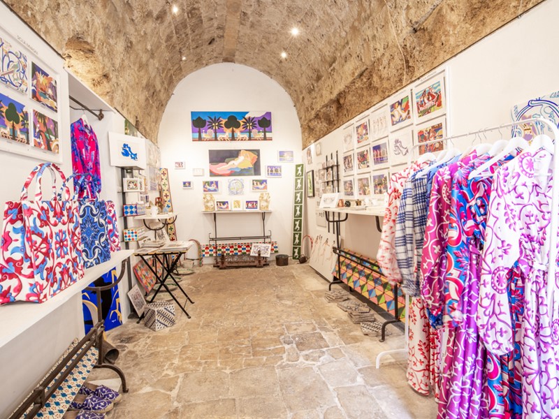 Potrebbe ospitare una boutique di alta moda, un negozio di artigianato locale di lusso, una galleria d'arte o uno showroom di prodotti tipici siciliani.