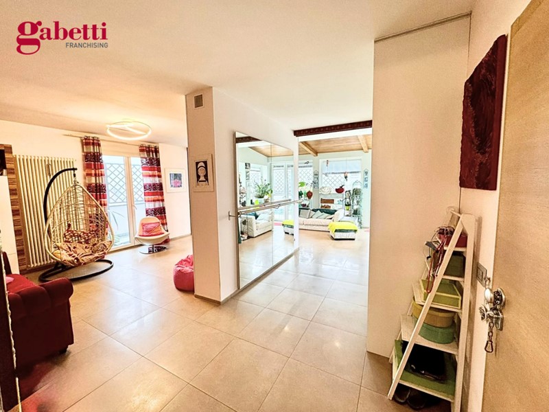 L’attico si presenta in ottime condizioni, parzialmente arredato e valorizzato da materiali contemporanei e ambienti accoglienti, pronti da vivere. Completano la proprietà logge e balconi che ampliano ulteriormente gli spazi esterni, due garage al piano terra e un posto auto esterno. Possibilità di acquistare l'immobile con un solo garage.