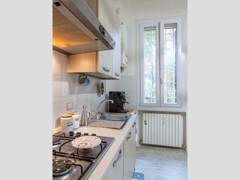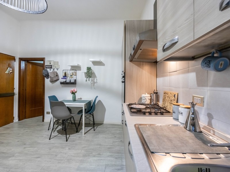 Impianto elettrico a norma, arredato di cucina e armadio, pronto per essere abitato.