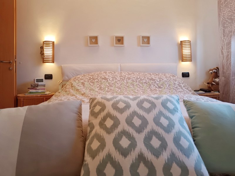 La zona notte offre una grande camera matrimoniale, una cameretta, un bagno con ripostiglio integrato e un piccolo studio, discreto e riservato.