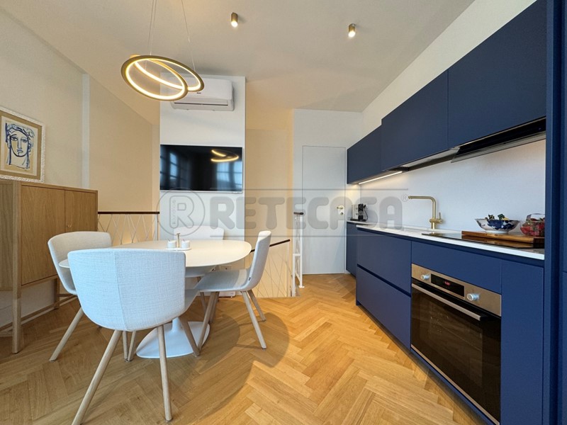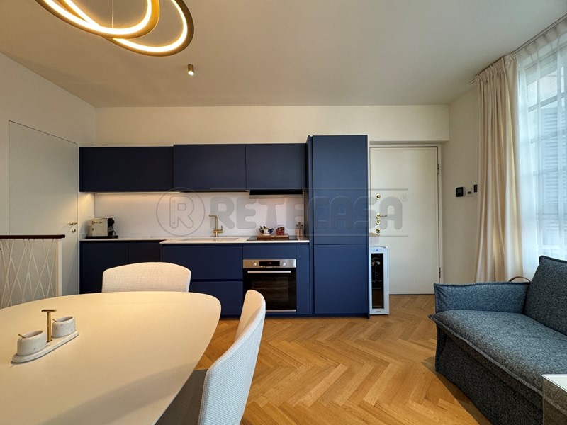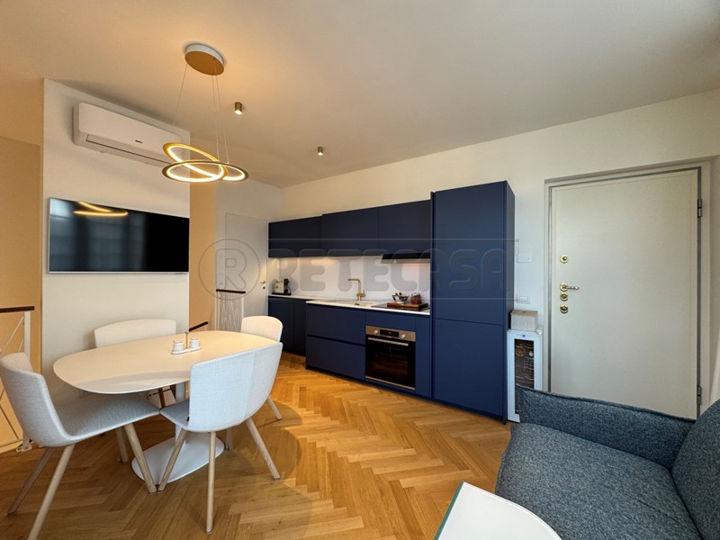 L'immobile viene proposto COMPLETAMENTE AMMOBILIATO CON ARREDO DI DESIGN SU MISURA DI ASSOLUTO PREGIO, inclusi gli elettrodomestici, ed è dunque pronto da abitare.