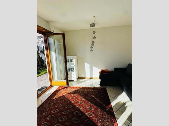 Sito a piano terra, con giardino di proprietà esposto al sole, si compone di: atrio di ingresso, soggiorno con grandi vetrate sul terrazzo, angolo cottura, disbrigo, un bagno spazioso e una stanza da letto matrimoniale con uscita sul giardino. A piano interrato una cantina di proprietà. Posti auto disponibili.