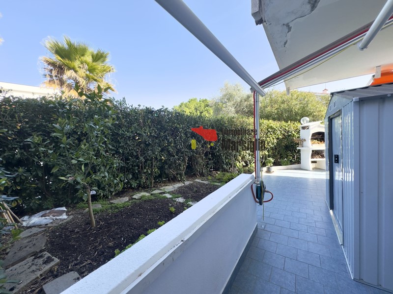 Dalla camera e dal soggiorno si accede all’ampio terrazzo perimetrale con porzione di giardino, con esposizione sud-est che garantisce un’ottima luminosità durante tutta la giornata.