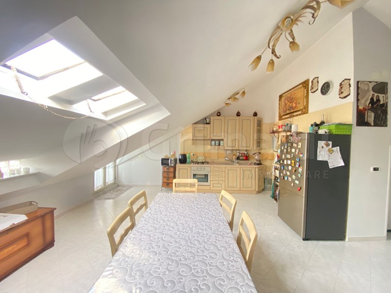 La cucina abitabile, arricchita da un ampio lucernario che garantisce grande luminosità naturale, dispone inoltre di accesso ad una seconda esposizione con balcone terrazzato.