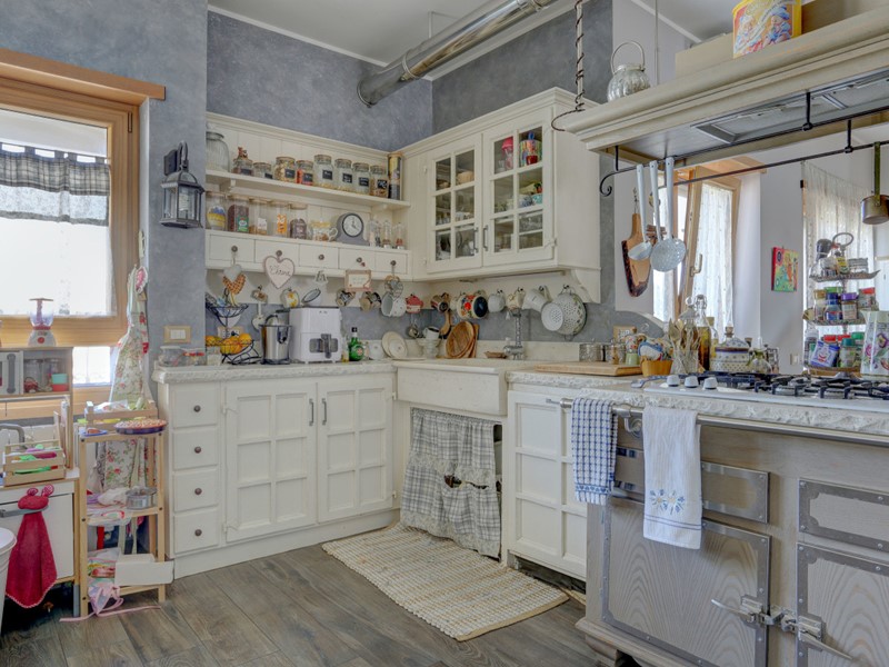 La zona giorno si apre con un salone triplo di circa 85 mq, un ambiente maestoso e accogliente con cucina a vista, reso unico da due terrazze esposte a est e a ovest, perfette per colazioni al sole o cene al tramonto. Un ulteriore elemento di pregio è il camino funzionante, con canna fumaria recentemente sostituita, che dona calore e atmosfera agli ambienti. Le ampie superfici finestrate – due porte-finestre e tre finestre aggiuntive – garantiscono luce naturale in ogni momento della giornata. Completa la zona giorno un pratico ripostiglio finestrato.