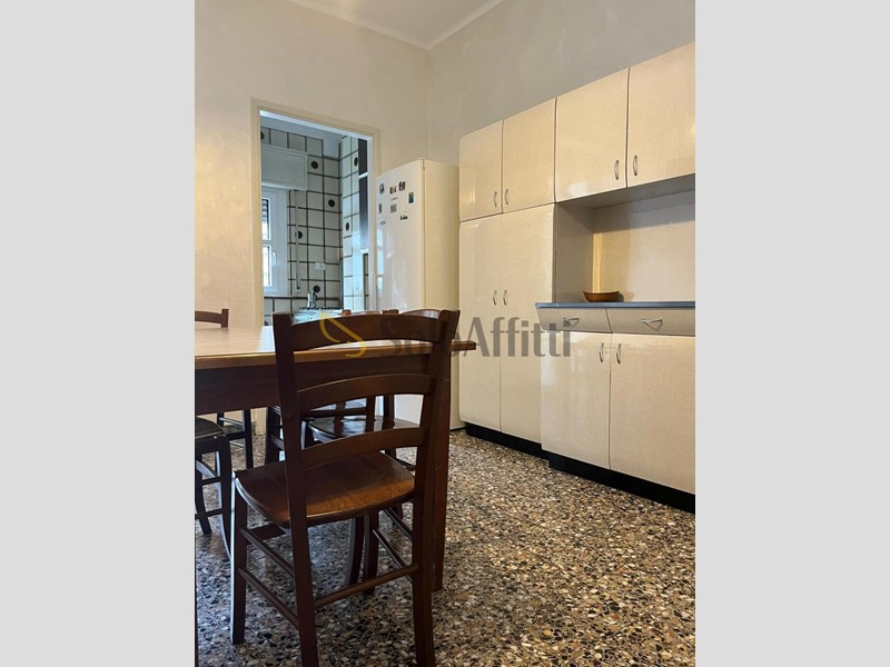 Internamente l'immobile, al quale sono stati sostituiti gli infissi ed il portoncino blindato, si compone di: ingresso, soggiorno con cucinino separato, due ampie camere matrimoniali (arredate come in foto, per studenti), servizio con finestra, ripostiglio e due balconi.
