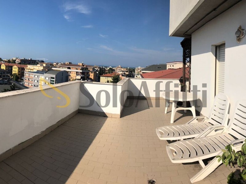 Pescara Porta Nuova, a poca distanza dal mare e dallo stadio adriatico, al piano sesto di una grande palazzina, proponiamo in affitto appartamento trilocale parzialmente arredato (da cucina e mobile soggiorno), spazioso e luminoso con terrazzo molto ampio parzialmente coperto vista mari e monti. L' immobile di circa 60 mq è composto da soggiorno con angolo cottura, camera matrimoniale, piccola cameretta e servizio con vasca. Nel canone di locazione è compreso l'uso di un garage di circa 15 mq.