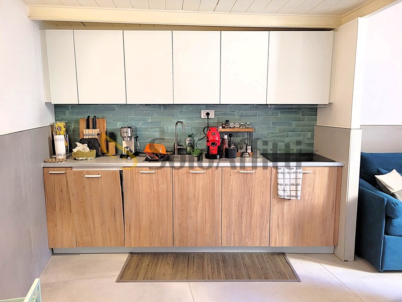 Appena entrato, Ti troverai nel living con cucina a vista, soluzione ideale per ottimizzare gli spazi, senza in alcun modo rinunciare a comodità e funzionalità.