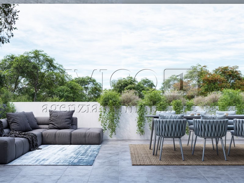 Da qui si accede allo spettacolare terrazzo living di oltre 100 mq, un vero prolungamento della casa all’aperto: uno spazio esclusivo ideale per cene sotto le stelle, momenti di relax o per creare un raffinato salotto outdoor.