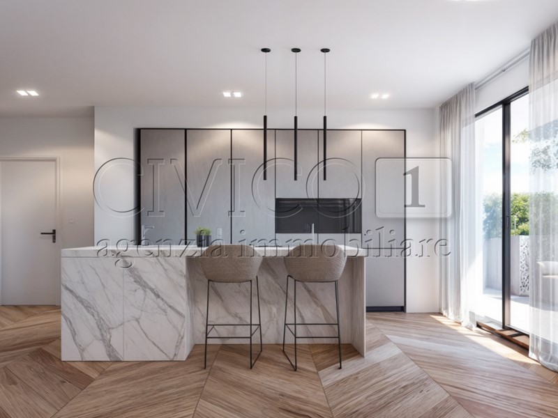Nel cuore della città, in posizione riservata ma perfettamente servita, proponiamo raffinato appartamento bicamere con straordinario terrazzo living di oltre 100 mq, inserito in un elegante contesto residenziale di nuova concezione.