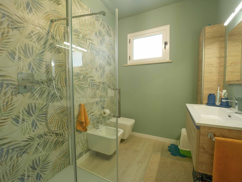 bagno moderno con box doccia e sanitari sospesi