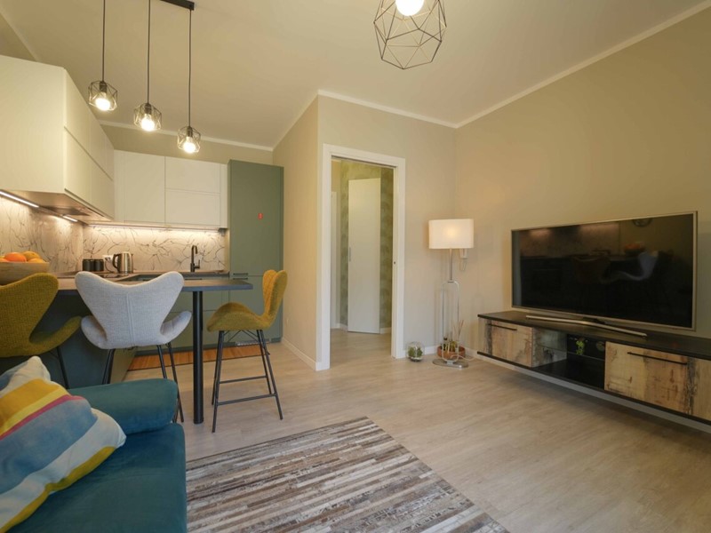 luminoso soggiorno con angolo cottura